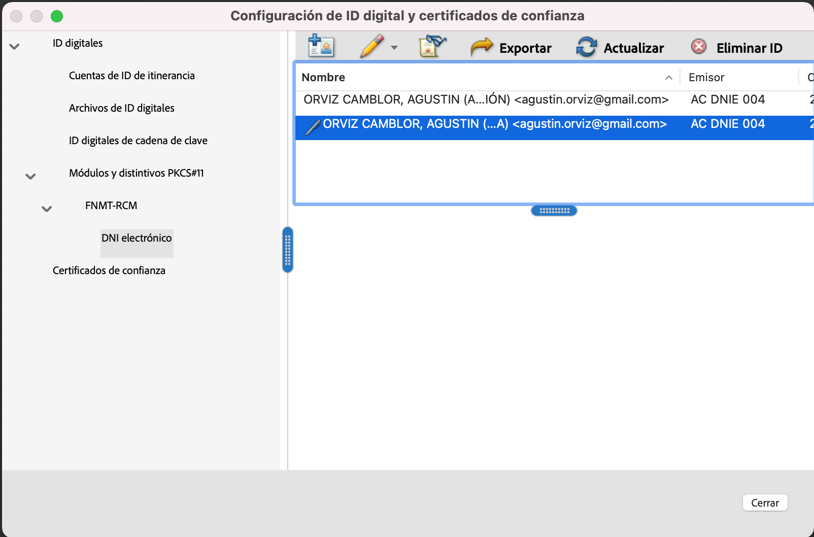 Certificados del DNIE-e visibles sin avisos en Acrobat Reader
