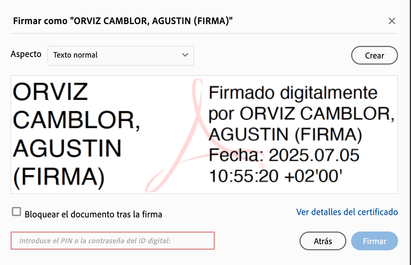 firma_adobe_8 Pantalla de firma en Acrobat Reader donde nos pide el PIN para el acceso a la firma de nuestro DNIE-e